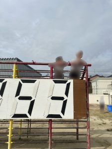 ・組体操前に円陣を組んでいます ・組体操が終わると皆泥だらけでした ・得点係をしていました
