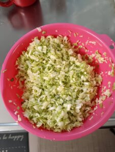 キャベツを切って塩を揉みこむ ※私が